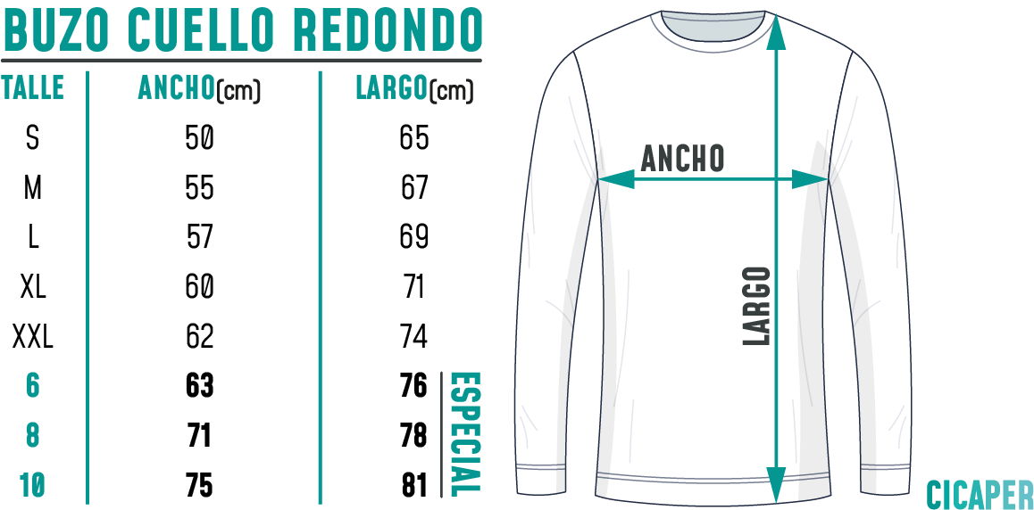 TALLES DISPONIBLES: S, M, L, XL, XXL, 6, 8 Y 10 (talles especiales)