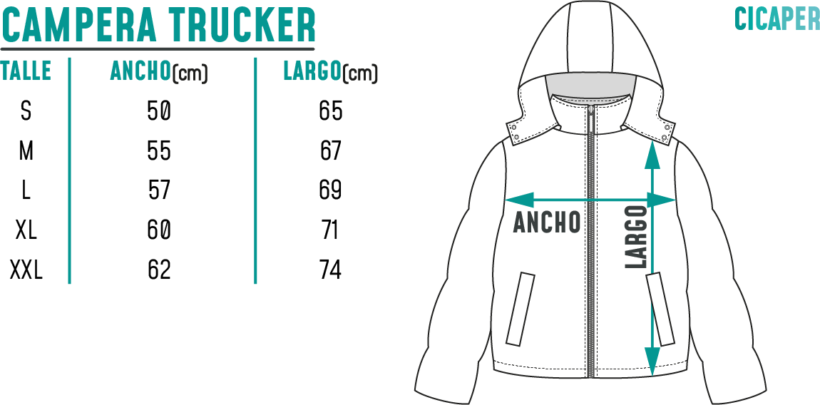 MATERIAL: confeccionada en tela trucker de alta resistencia, con interior matelaseado para mayor abrigo.