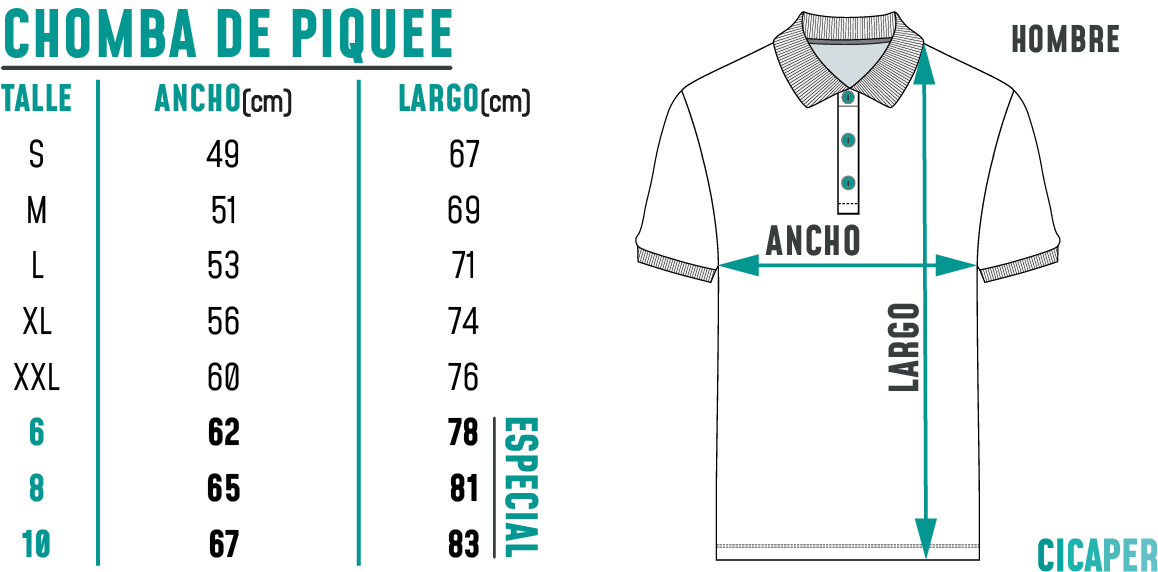 TALLES DISPONIBLES: S, M, L, XL y XXL y 6, 8 y 10. Calce regular, adaptable tanto para hombre como para mujer.